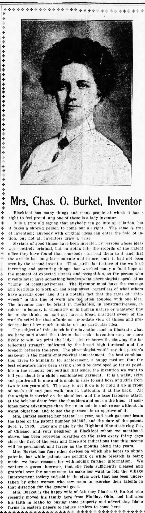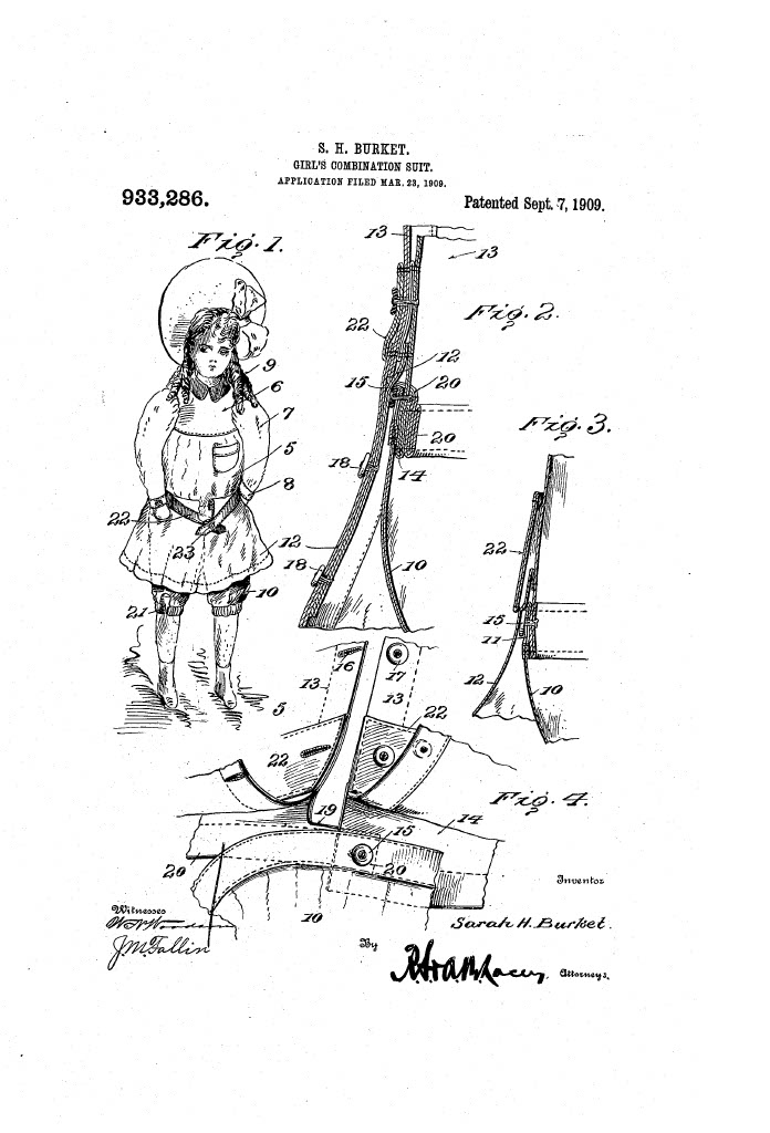 Here's a copy of Mrs. Burket's patent, which has expired should you wish to resurrect it, perhaps as a retro fashion.