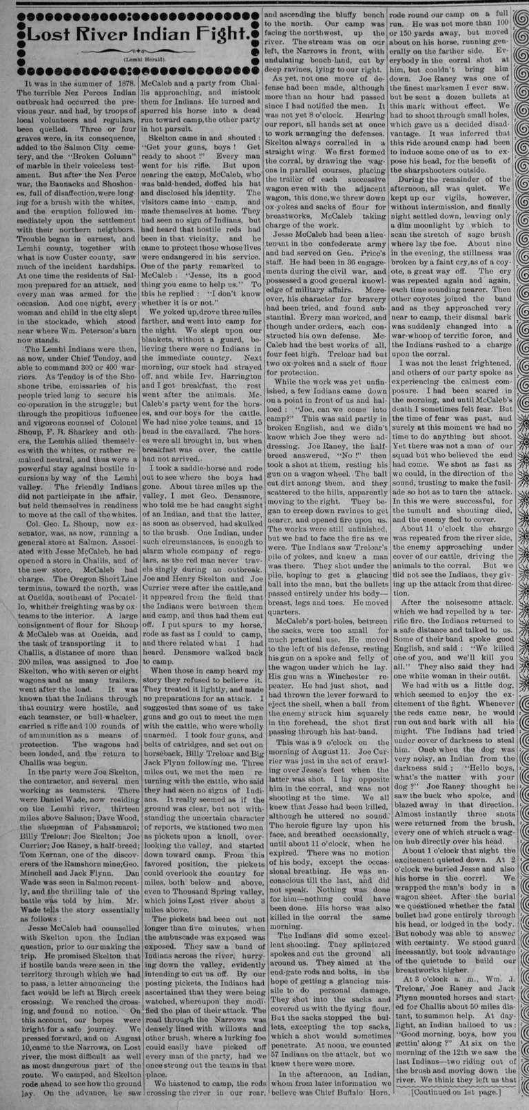 Skelton would recover after several months in the hospital, after which he continued freighting on the Corinne to Salmon Route and sometimes the Blackfoot-Ketchum run. Like most freighters, he ran into more misfortune, being attacked at Houston by Indians in 1878 in an event that ended up with one man dead and was part of a brief war with the Shoshone-Bannocks.