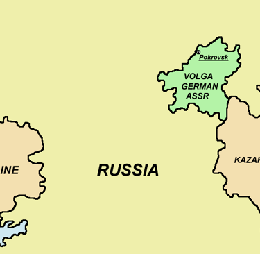 Above, a map of the general area from which the families of many of Idaho's Mennonites originated. The Volga Germans kept their culture and language, allowed to do so by a Russia that needed immigrants in the late eighteenth and nineteenth centuries.